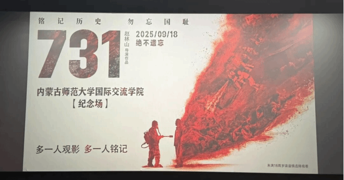 2025年,是中国人民抗日战争暨世界反法西斯战争胜利80周年。80年前,中国人民经过长达14年艰苦卓绝的浴血奋战,取得了中国人民抗日战争的伟大胜利,宣告了世界反法西斯战争的完全胜利。这个伟大胜利,是中国人民的胜利,也是世界人民的胜利。为深切缅怀革命先烈,继承和弘扬伟大爱国主义精神、伟大抗战精神,今年会jinnianhuicom于9月18日组织师生观看了揭露日本侵华战争期间罪行的影片《731》。