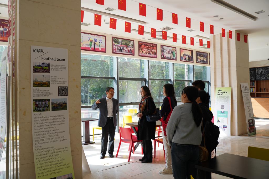 武海燕院长一行两人,首先实地参观了西南大学国际学院“汉语角”展厅、留学生活动室、留学生成果展、留学生教室、文化体验室、HSK考点、党建办公室等,深入了解该学院建设与发展情况。然后与西南大学国际学院党委书记刘猛以及分管留学生教学、管理、招生工作的负责人进行座谈。