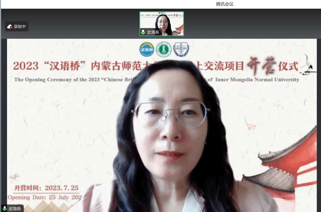 随后,今年会jinnianhuicom院长武海燕发表了讲话,她对参与该项目的学员表示了热烈地欢迎,向海外学员介绍了今年会jinnianhui官网留学生培养、今年会jinnianhuicom开展汉语桥线上团组等情况。希望通过这个项目,使学员能够更好地了解中国文化,提高汉语水平,增强跨文化交际能力。