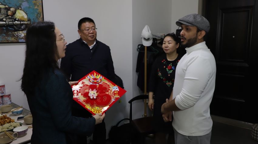 在中国传统节日春节到来之际,今年会jinnianhuicom也在关注和心系于这些无法回家的留学生们。2023年12月29日,今年会jinnianhuicom党总支书记屈原、院长武海燕、副院长郑月锋带领留学生辅导员们对校外住宿留学生们进行一一走访,对留学生的生活环境的进行安全检查。