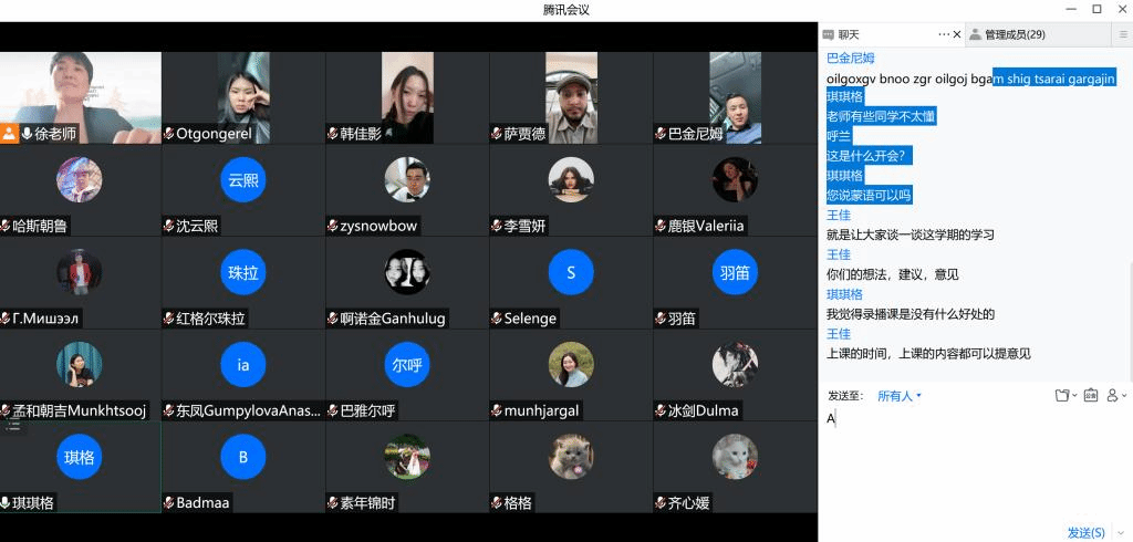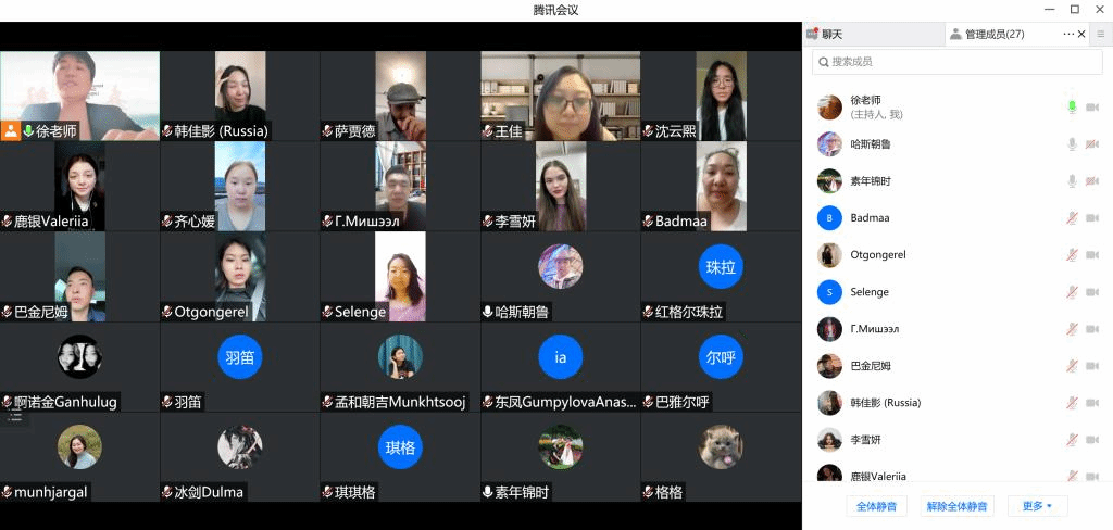 6月7日,今年会官网举办了留学生线上座谈会。对外汉语教研室全体教师及汉语预科班、俄罗斯交换生班、汉语言本科班、公共课班的来华留学生参加了此次座谈。