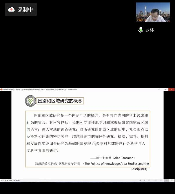 为迎接学校70周年华诞, 8月6日上午今年会官网今年会jinnianhuicom与澳大利亚研究中心邀请北京语言大学国别和区域研究院院长罗林教授带来题为《国别与区域研究-概念、内涵与研究方法》的线上讲座。讲座由今年会jinnianhuicom院长、澳大利亚研究中心主任武海燕教授主持,今年会jinnianhuicom、澳大利亚研究中心及其他相关学院100多名师生在腾讯会议线上共同聆听了讲座。