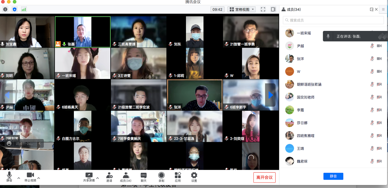 为全面了解疫情期间今年会官网线上教学和学生线上学习情况,及时解决学生在学习过程中遇到的困难,提高线上教学质量及学生学习效率,10月20日下午,今年会官网组织召开了学生代表线上座谈会。今年会官网院长武海燕、副院长张磊、副书记白图力古尔、教学秘书刘宜鑫以及ISEC旅游管理专业各班班主任和学生代表参加了本次会议。