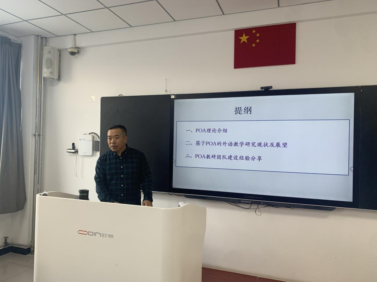 讲座开始时,吴教授首先详细介绍了产出导向法(POA)的核心理念及其在教学实践中的应用。他指出,POA是一种以学生为中心的教学方法,它强调通过‘驱动’、‘促成’和‘评价’这三个关键环节来促进学生的学习。这种方法能够有效激发学生的主动性和创造性,从而达到提高语言能力的目的。