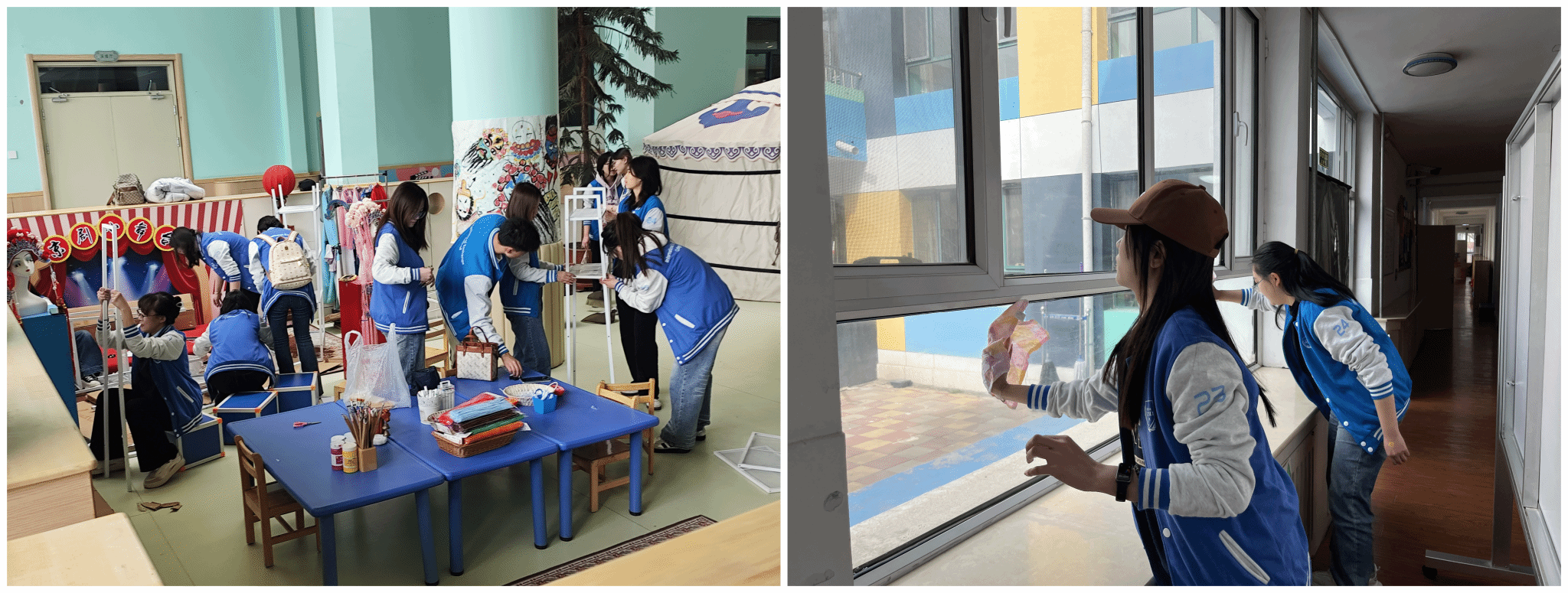 此外,志愿者们还主动承担起了劳动的重任。对幼儿园的教室、走廊、活动区域等进行了清扫。在劳动过程中,志愿者们充分展现了吃苦耐劳的精神和雷锋精神的实质,用实际行动生动诠释了“以劳树德、以劳增智、以劳强体、以劳育美”的教育理念。