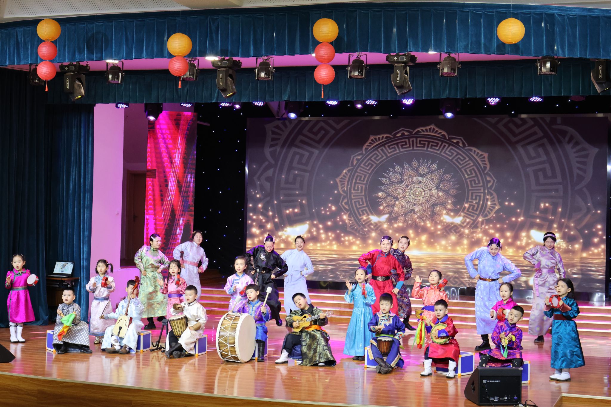 活动在主持人的致辞中正式拉开帷幕。舞台上教师们与小朋友们身着民族服装,共同演绎了精彩的舞蹈。
