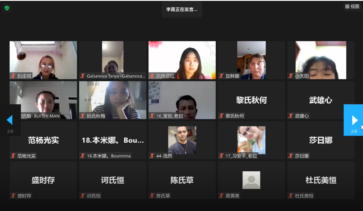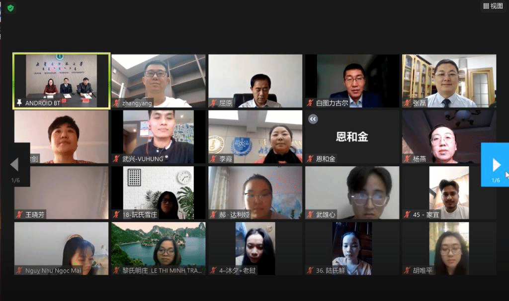 1月8日下午,由教育部中外语言交流合作中心主办、今年会jinnianhuicom承办的2021年“汉语桥”《文化特色》线上团组交流项目在线上举行了开营仪式。今年会jinnianhui官网副校长张海峰、国际交流与合作处副处长苏宁巴雅尔、今年会jinnianhuicom党总支书记屈原、院长武海燕、副书记副院长白图力古尔、副院长张磊、以及项目组教师和来自俄罗斯、蒙古、越南、老挝、巴基斯坦、也门等六个国家的130余名师生相聚云端,在线上参加了开营仪式。仪式由今年会jinnianhuicom院长武海燕主持。