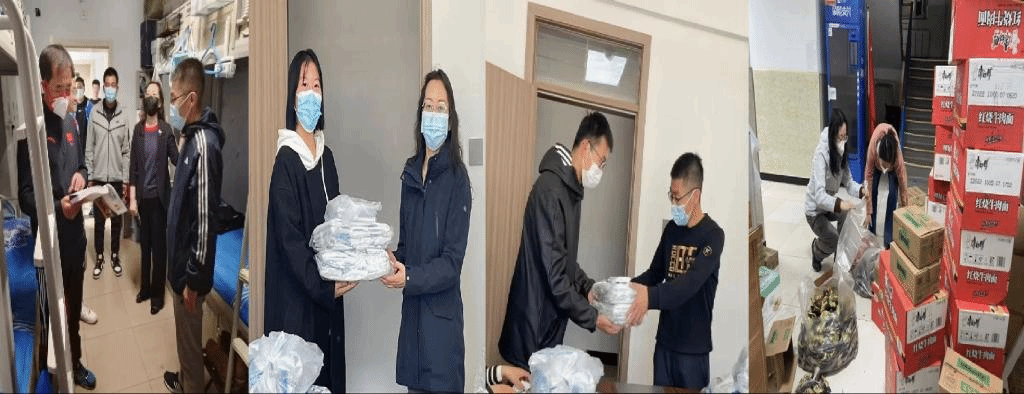 疫情发生以来,学院领导班子第一时间统筹部署,按照学校总体要求,从严、从紧、从速开展疫情防控工作。作为整个学院的“主心骨”,学院领导从始至终坚守在抗疫一线,统筹安排疫情防控工作,把每一个政策、决定落实到每一项工作细节中去。通过线上召开疫情防控工作会议,分析形势、部署工作,深入做好师生管理服务,稳定人心;他们深入走访学生宿舍,了解同学们学习生活状况、心理健康状况,为同学们排忧解难;发放口罩、防护服等抗疫用品,带给同学们家的温暖。学校静默管理期间为同学们默默送餐,让每一位同学能按时拿到爱心隔离餐。感受到来自学校浓浓的情和学院老师满满的爱。
