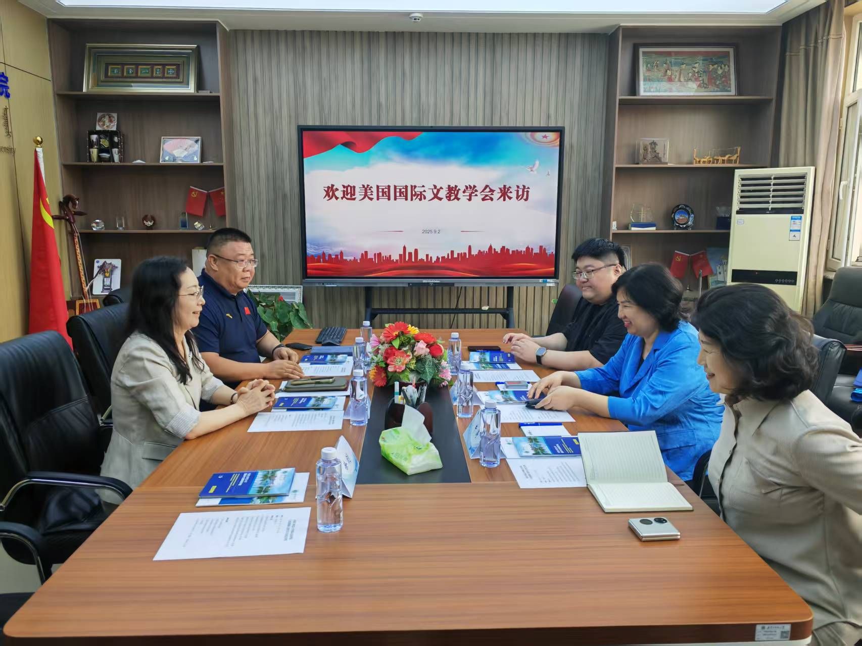 座谈中,武海燕院长介绍学校整体情况,作为教育部认定的留学生培养院校,在 “一带一路” 沿线国家生源培养与文化体验基地建设上的成果。Lisa Healy 分享其团队打造的全美中文演讲比赛等品牌项目经验,提出可依托双方资源开展中文教师培训与文化交流活动。双方围绕国际中文教育创新、北疆文化海外传播、留学生联合培养等达成初步共识,