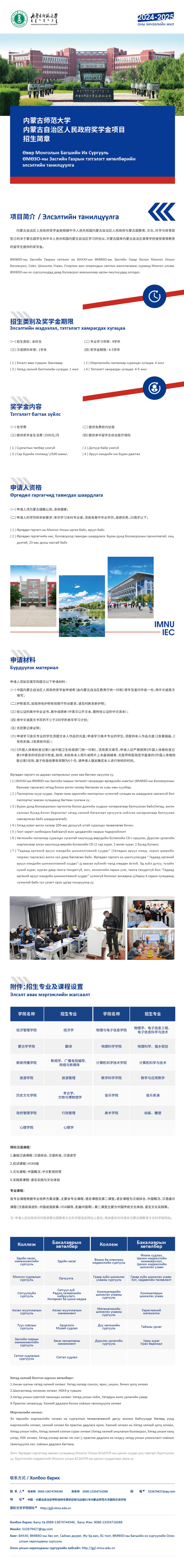 Өвөр Монголын Багшийн Их Сургууль ӨМӨЗО-ны Засгийн Газрын тэтгэлэгт хөтөлбөрийн элсэлтийн танилцуулга